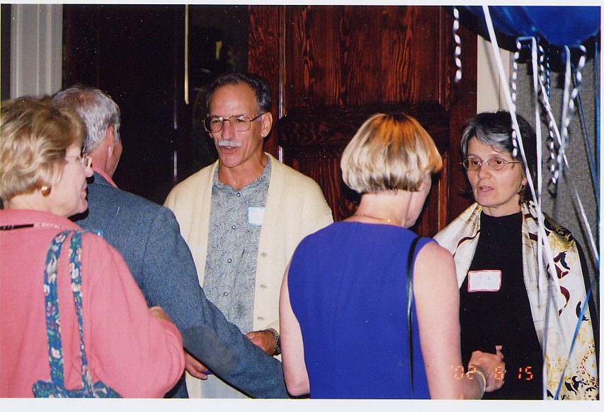 We had a little pre-reunion warmup at Don Wood's house, where the reunion committee downed a bottle of very fine 1961 wine provided by Ralph Pepe [Salesianum '61]. (The people pictured below are -- left to right -- Ralph Pepe, Nick Cupery, Rose Pepe, Jack Meeks, Henrietta [Davis] Apsley, Steve Apsley, Carol Wood, and Don Wood.)